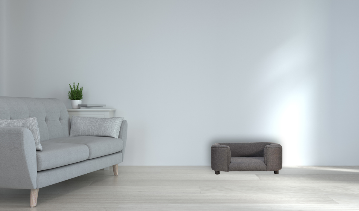 Match your pets furniture seamlessly to your interior. This sofa/bed has been upholstered in a lush battleship tweed and features padded cushions for ultimate comfort for your pet. Perfect for your cat or dog. Other features include straight legs for stability.