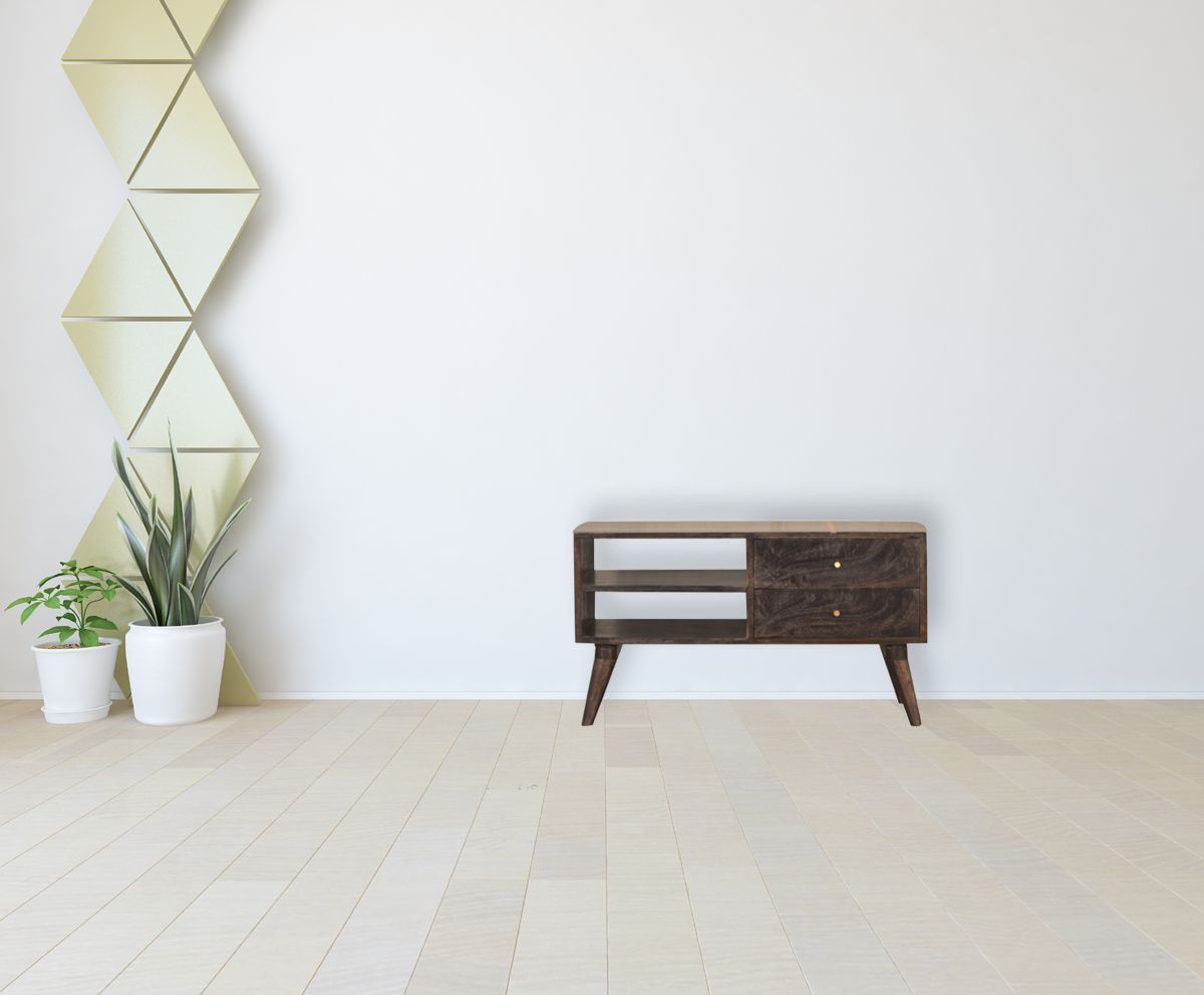 This modern coffee table will add a perfect touch to your living room. Constructed from 100% solid mango wood the beautiful ash black finish reveals the natural wood grain patttern. Convenient storage is offered with the space of 2 drawers and 2 open slots. More items available from the Cairo range.