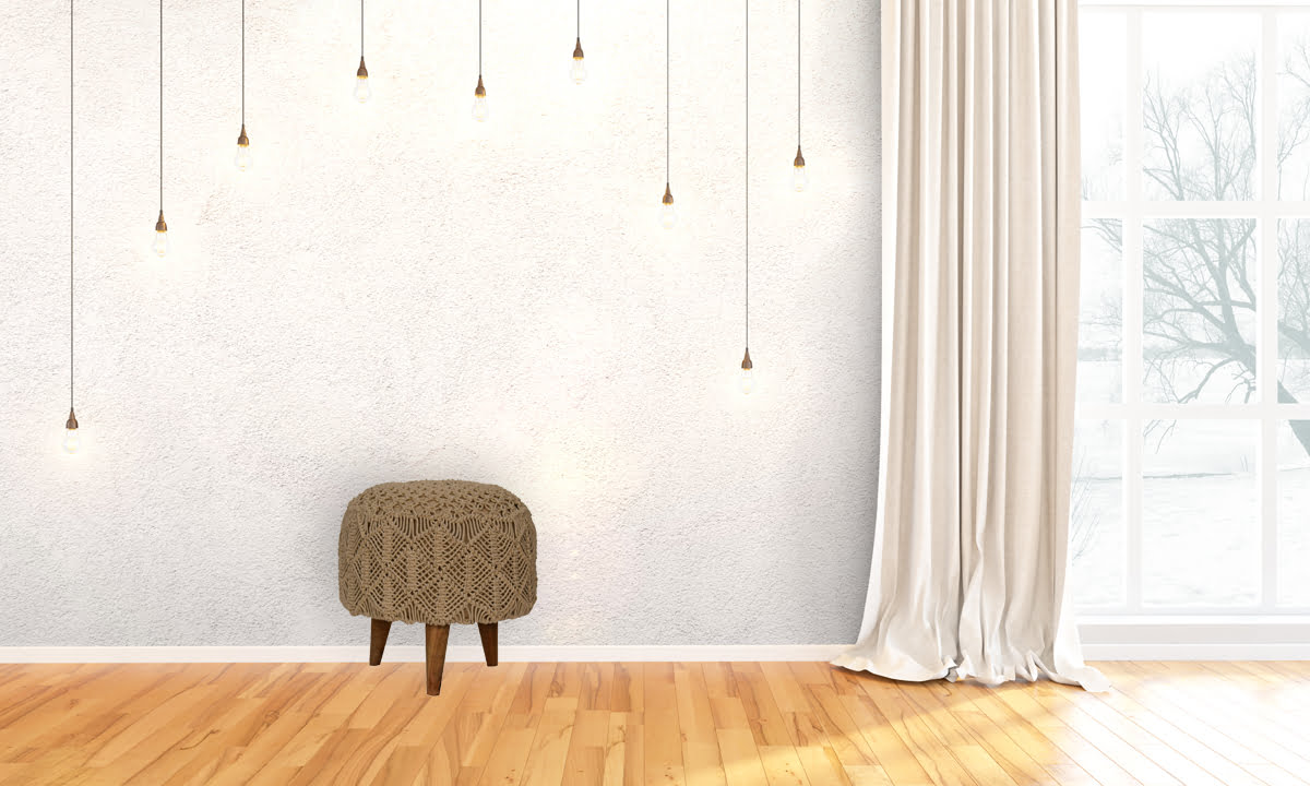 This contemporary style footstool will compliment many décor styles, introducing a modern, boho vibe into any living space or home interior. It has been braided from a beige thick and durable 100% cotton and has nordic style legs for extra durability.