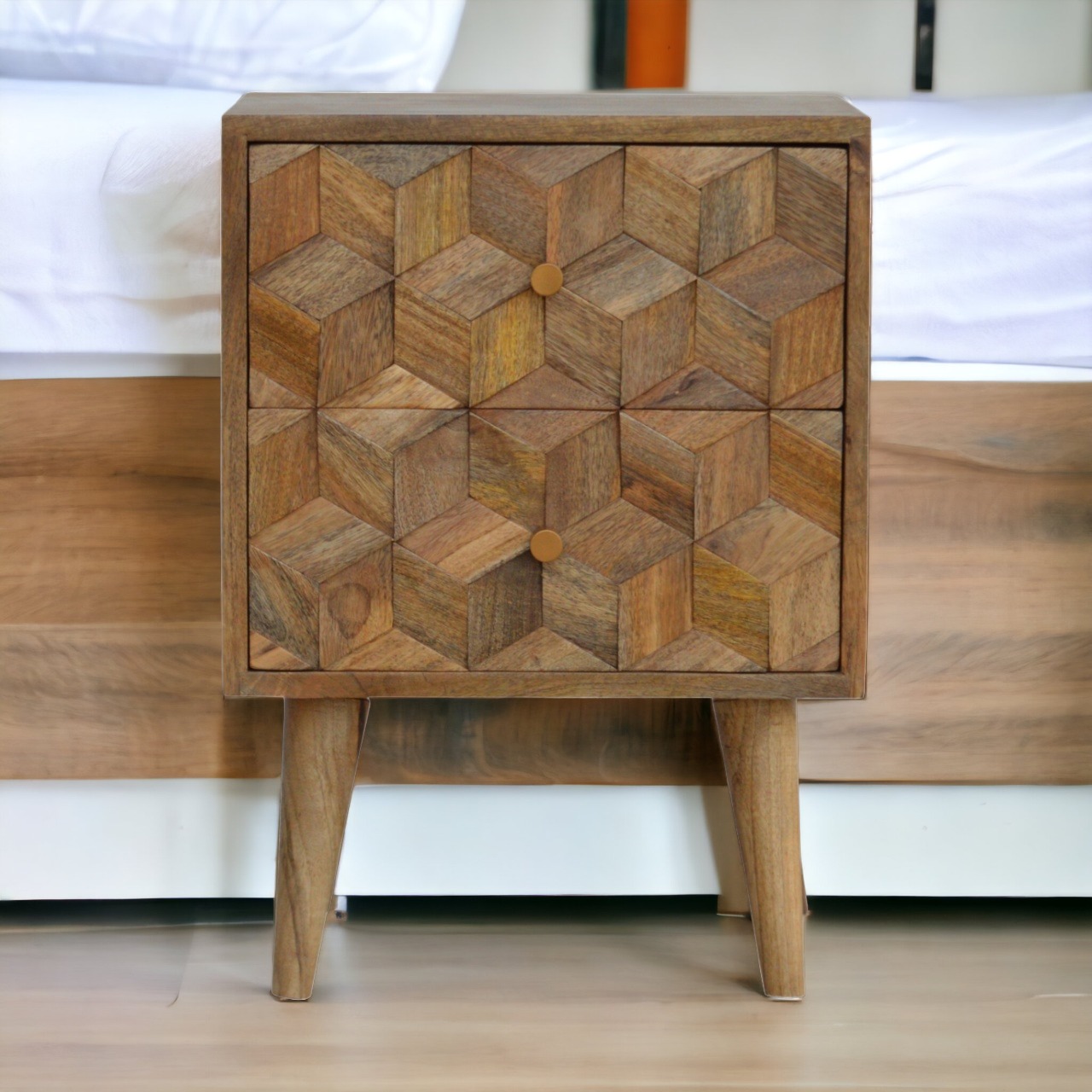 Dropship & Wholesale Cube Carved 2 Drawer Bedside