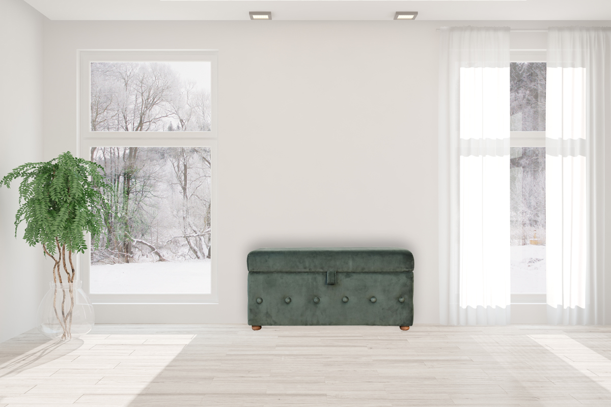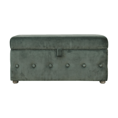 Make home storage effortlessly easy and elegant with this ottoman. Upholstered in a beautiful emerald cotton velvet fabric. There is lots of room inside for plenty of storage as well as a deep button design giving it a chic look. It is finished with four solid wood feet for balance. A discreet way to keep your home clean and tidy.