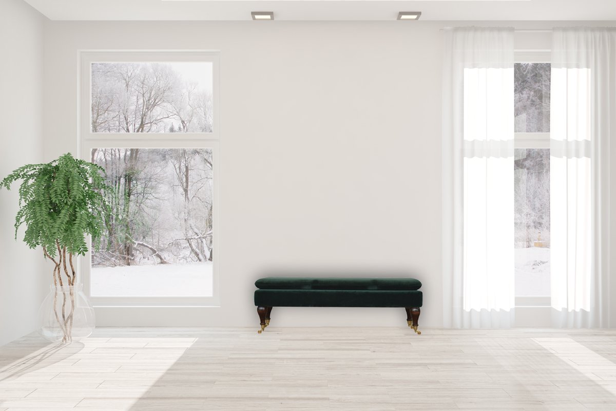 This bench is a great addition to the home. It has been upholstered in a beautiful emerald green cotton velvet fabric and has castor feet in walnut finish to allow easy movement of the bench. A lovely and elegant piece for the home.