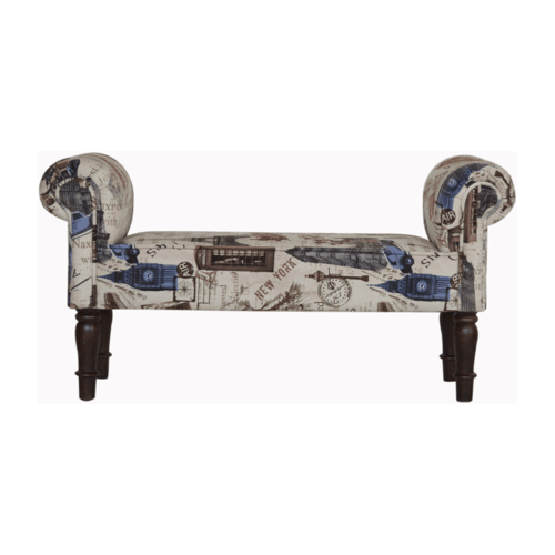 Update your home with this city printed bench, ideal for extra seating in the home. It features turned legs made of 100% solid mango wood. A perfect piece of furniture ideal for a hallway, end of the bed or simply a standalone living room piece.