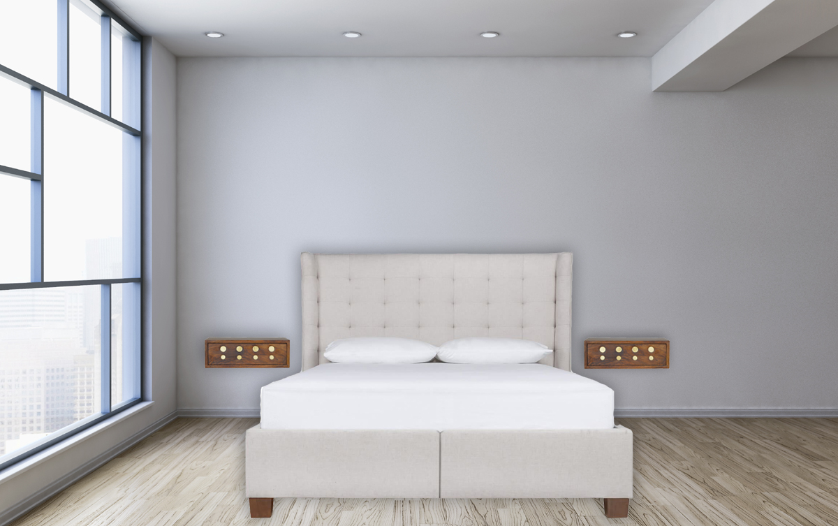 This wall-mounted bedside has been constructed from 100% solid mango wood in a chestnut finish and features 1 brass inlay cut-out pattern drawer with a shiny knob. This piece is perfect for storing any bits and pieces you wish to keep close by before bedtime. Its neat and clean design can easily be mounted on the wall without the fuss of any legs. Caution! Do not sit on the unit.