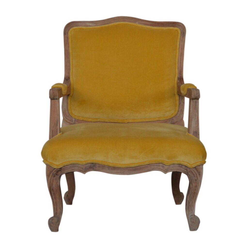 This elegant chair has been upholstered in a Brick red cotton velvet fabric. It features carved French style cabriole legs constructed from 100% solid mango wood in a sunbleach finish providing strength and durability. This simple yet classy piece can be incorporated in different home settings and interiors.