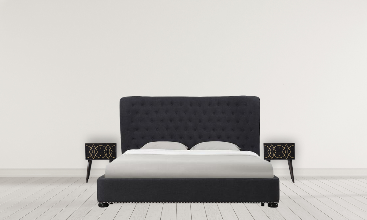 Wake up to a pleasant view every day by adding the Oslo bedside table to your bedroom. It comes complete with two drawers, decorated with a brass inlay pattern, that offer handy storage for your essentials. The bedside is constructed from 100% solid mango wood in an ash black finish and topped with a clear lacquer for maximum protection and durability of the product.