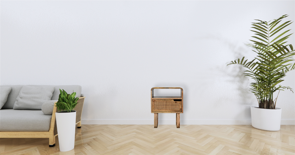Stylish and sophisticated, this Tallin Bedside boasts an elegant styling, perfect for adding a contemporary touch to your home. The gorgeous range is finished in an oak-ish finish with a rattan drawer front help to brighten your room some other features include an open slot, a decent size cut-out for easy access intoto the drawers and U-shape legs