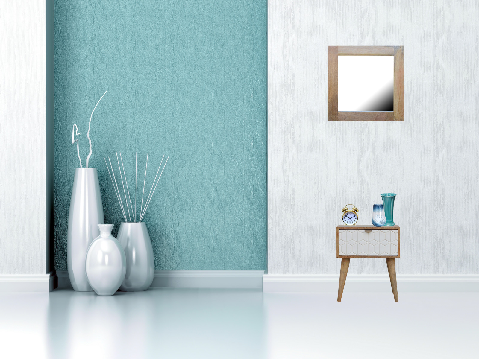 This carved bedside table is the perfect addition to add to any bedroom. It will prove handy all over your home and is made from 100% solid mango wood with a fine oak ish finish. The main feature of the piece is the white painted drawer that stands on 4 Nordic style legs.