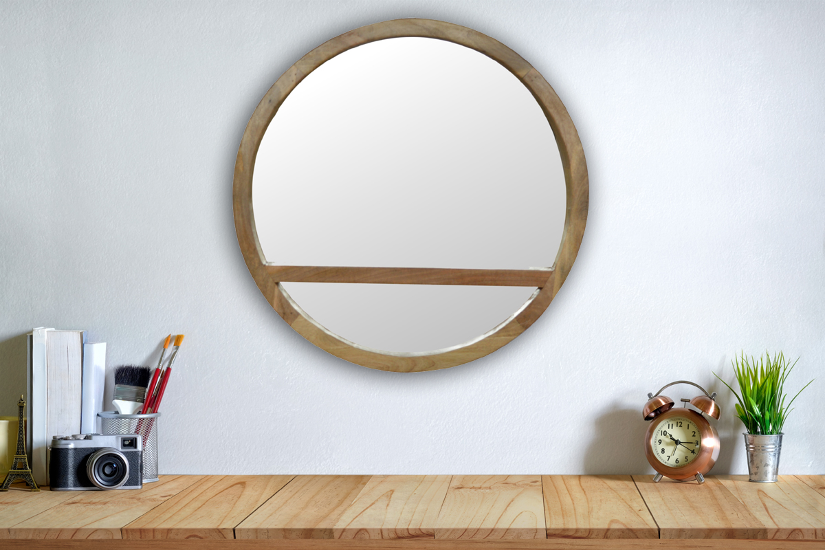 Dropship & Wholesale Wooden Round Mirror with 1 Shelf
