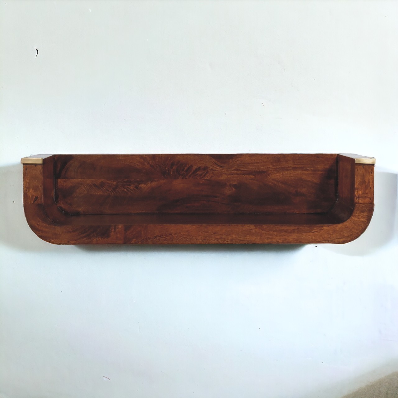 The Indira Floating Console Table is composed of a large open slot with rounded edges making it child and pet-friendly in the home, avoiding any accidents. The unit itself has been constructed from 100% solid mango wood in a chestnut finish and will make the perfect wall mounted piece for your hallway or living room.
