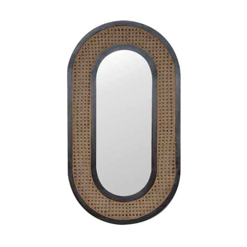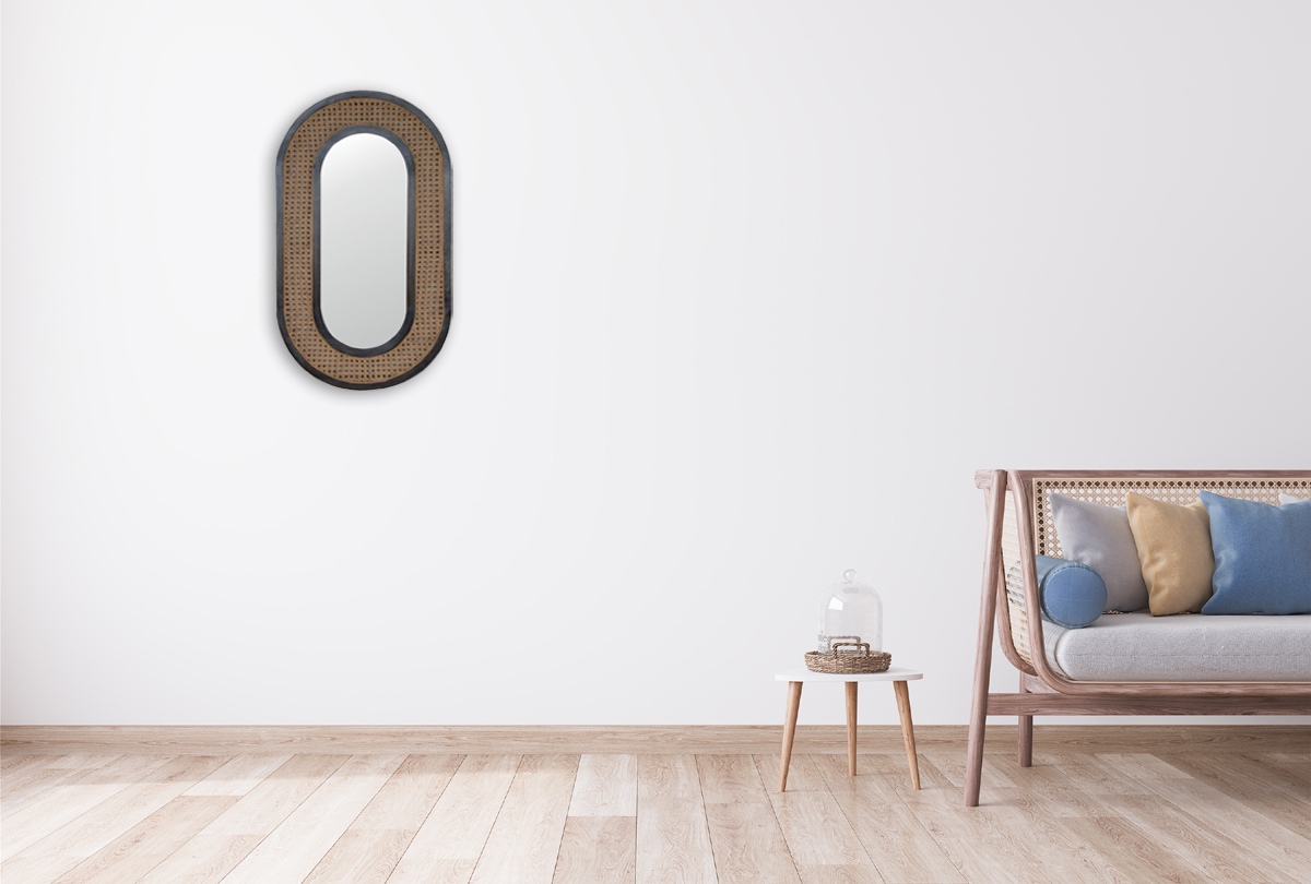 This mirror has been beautifully made from 100% solid mango wood in a carbon black finish with a hand-woven rattan design. Featuring rounded corners, this mirror can be used in a variety of settings such as the bedroom, hallway or living room.