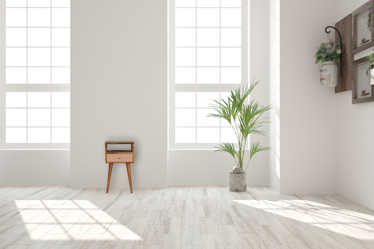 This beautiful and neat bedside is constructed from 100% solid mango wood and has a fine oak-ish finish. Useful storage space is available with 1 blush pink hand-painted drawer, 1 shelf, and a decent-sized tabletop to place any ornaments. Other features include 4 Scandinavian-styled legs.
