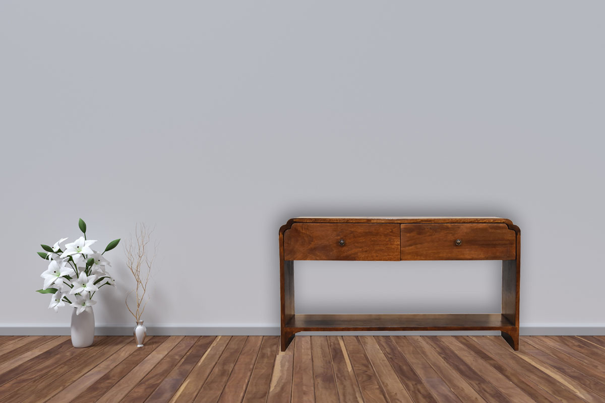 An elegant addition to your room, this Newton Console Table is a stylish and practical piece of furniture. It includes 2 spacious drawers to store away miscellaneous items as well as a shelf underneath for extra space, it will surely be a welcome addition to your surroundings. It has been constructed from 100% solid mango wood in a chestnut finish along with a shiny brass knob.
