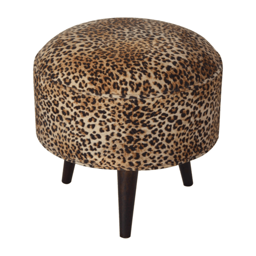 The beautiful and fashionable animal print footstool is the perfect addition to any bedroom or living room. It is available in several different colours and has been upholstered in a luxurious leopard print cotton velvet fabric perfect for putting your feet up, using as a handbag stand, or as an accent piece in the home.