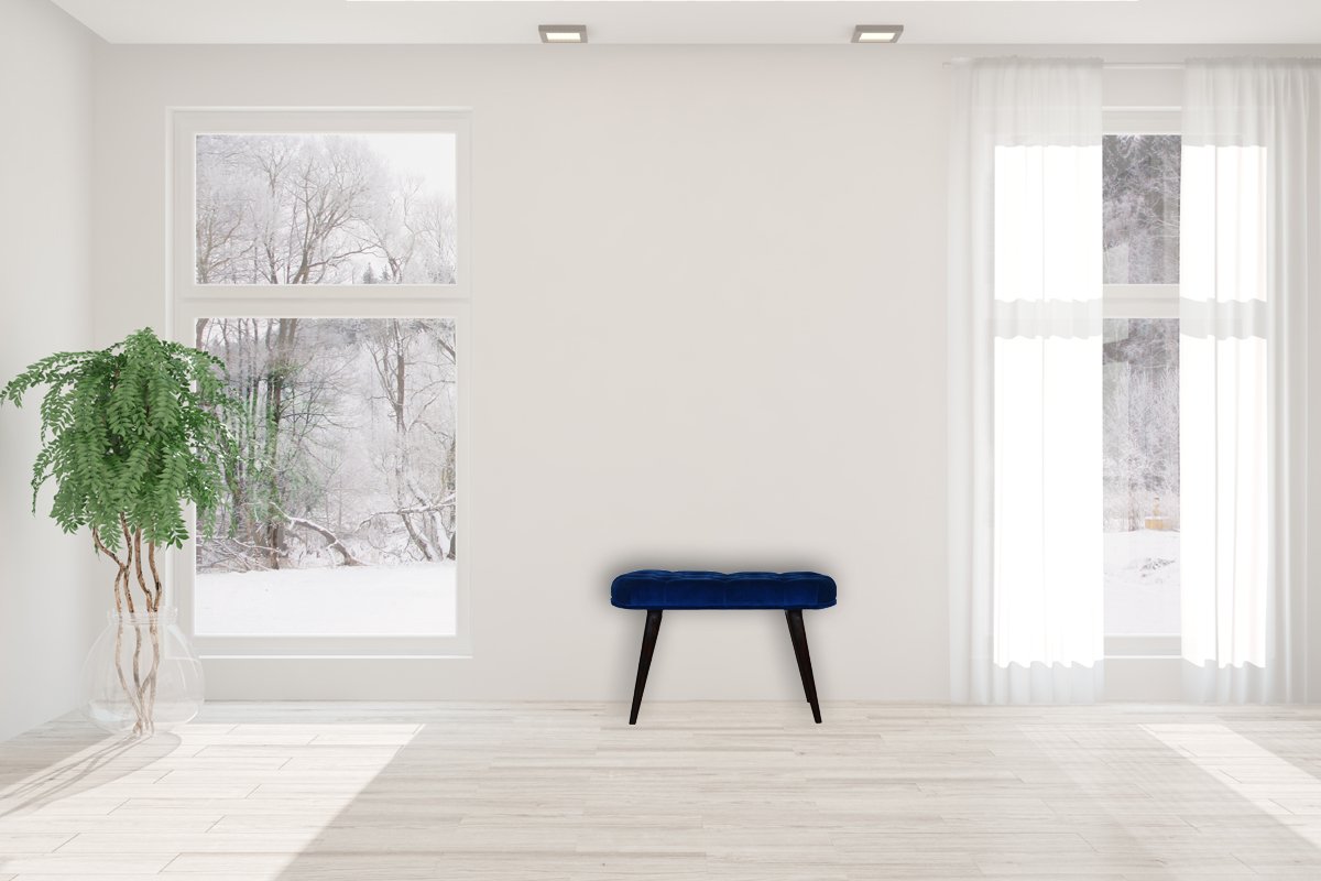 This Nordic style bench has been upholstered in a beautiful Royal Blue cotton velvet fabric and features a classy deep-button design on the top. The bench stands on 4 legs constructed from 100% solid mango wood in a walnut finish and it is the perfect piece to add to your bedroom or hallway as a finishing touch in the home.