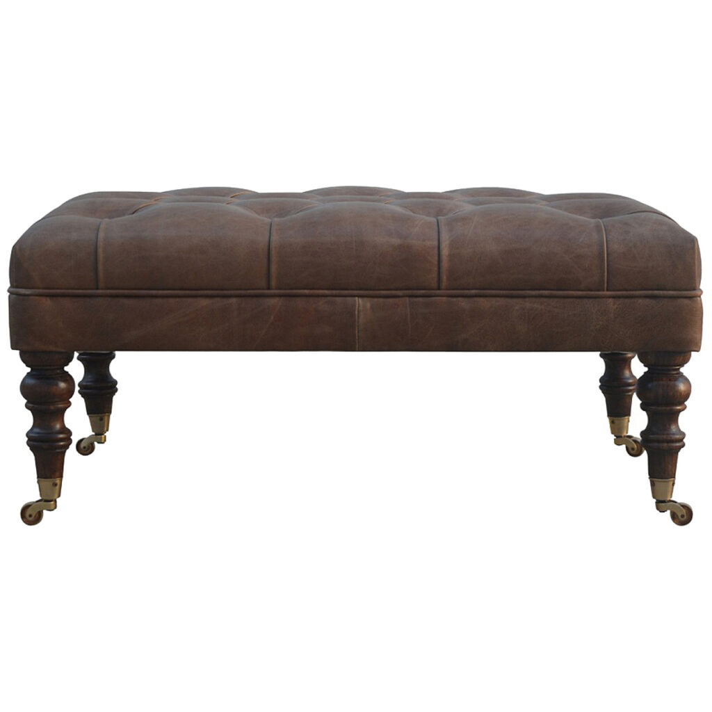 California Walnut Buffalo Tan Leather Ottoman with Castor Legs